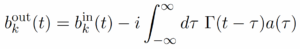 The description of light as quanta is perhaps most appropriate when a standing wave forms as in an optical cavity. One may ask how these cavity modes (a) interface with free space modes (b) in a fully quantum-mechanical approach. The answer was provided by Collett and Gardiner, PRA 31, 3761 (1985) who found the frequency space expression for the output