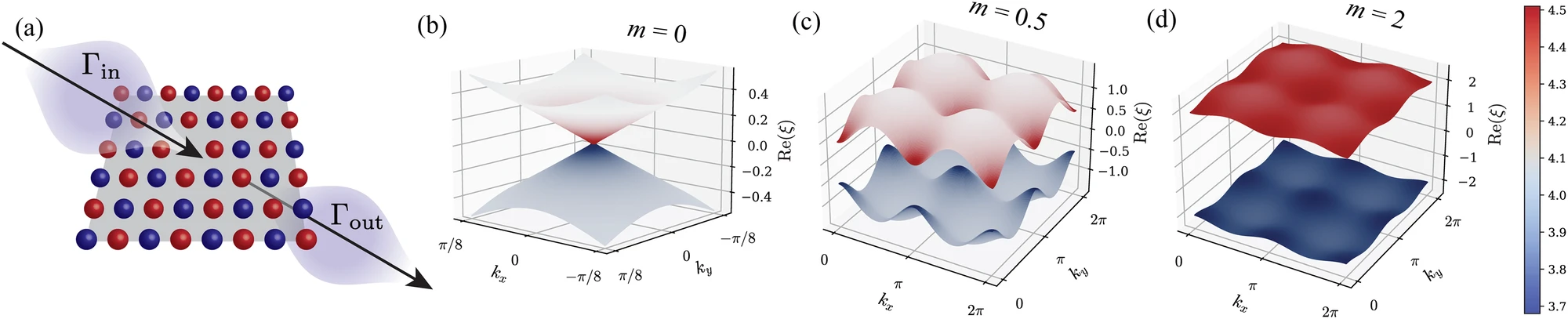 A first application of engineering material properties is to flatten electronic bands using dissipative coupling to an environment. Flat bands are an ideal environment to realize exotic physics such as superconductivity (cuprates have flat bands at the Fermi energy), correlated insulating states (such as those in twisted bilayer graphene), and to study quantum geometric properties (such as Berry curvature effects and superfluid weight bounds). In Phys. Rev. B 106, 161109 (2022), Martin Claassen and I showed that under certain circumstances it is possible for dissipation to induce flat bands in a system with otherwise dispersive bands. Additionally we characterized the symmetries necessary to realize these flat bands and proposed possible materials realizations. A continuing thread of my research is whether it is possible to engineer other material properties using dissipation.